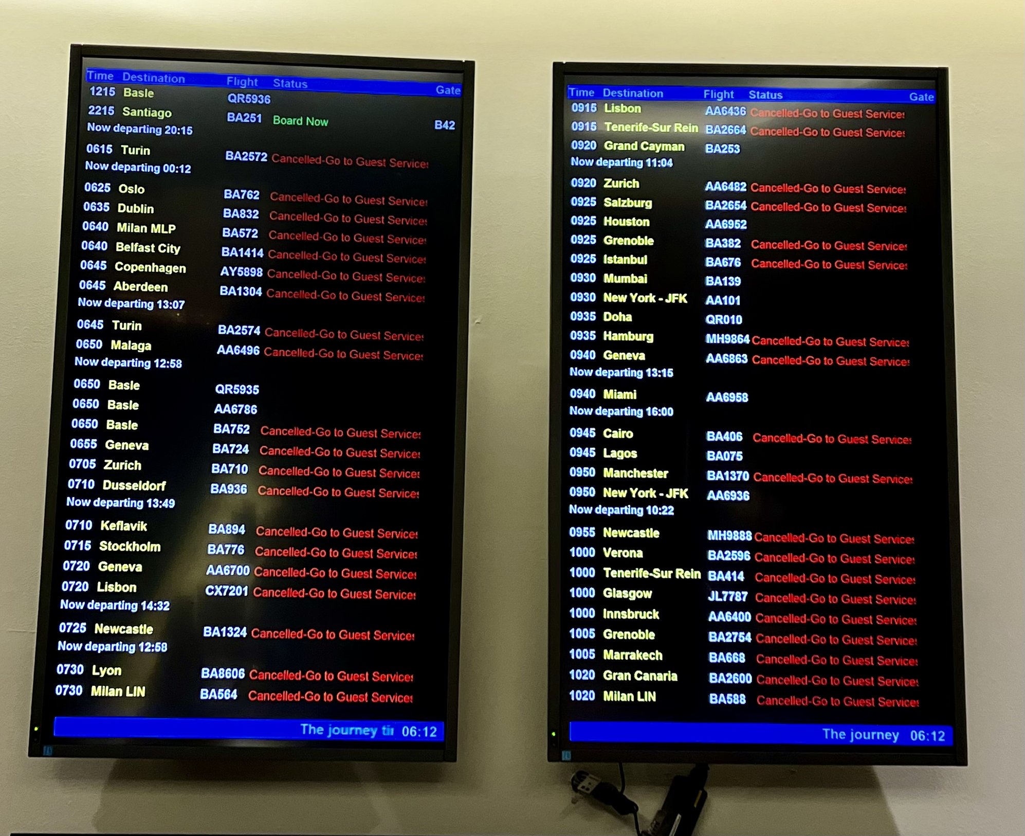 BA added: "Our website ba.com is working and customers can check-in online and at the airport. We are offering customers on cancelled services options including a full refund and all customers booked to travel on short-haul services from Heathrow today can opt to rebook to a later date for free if they choose. We will be contacting customers proactively. Our teams have been working hard through the night and will continue to do so to resolve the issue as soon as possible... We know we have let our customers down and we will do everything we can to make this up to them – but for now our focus is on getting as many customers and flights away as we can."