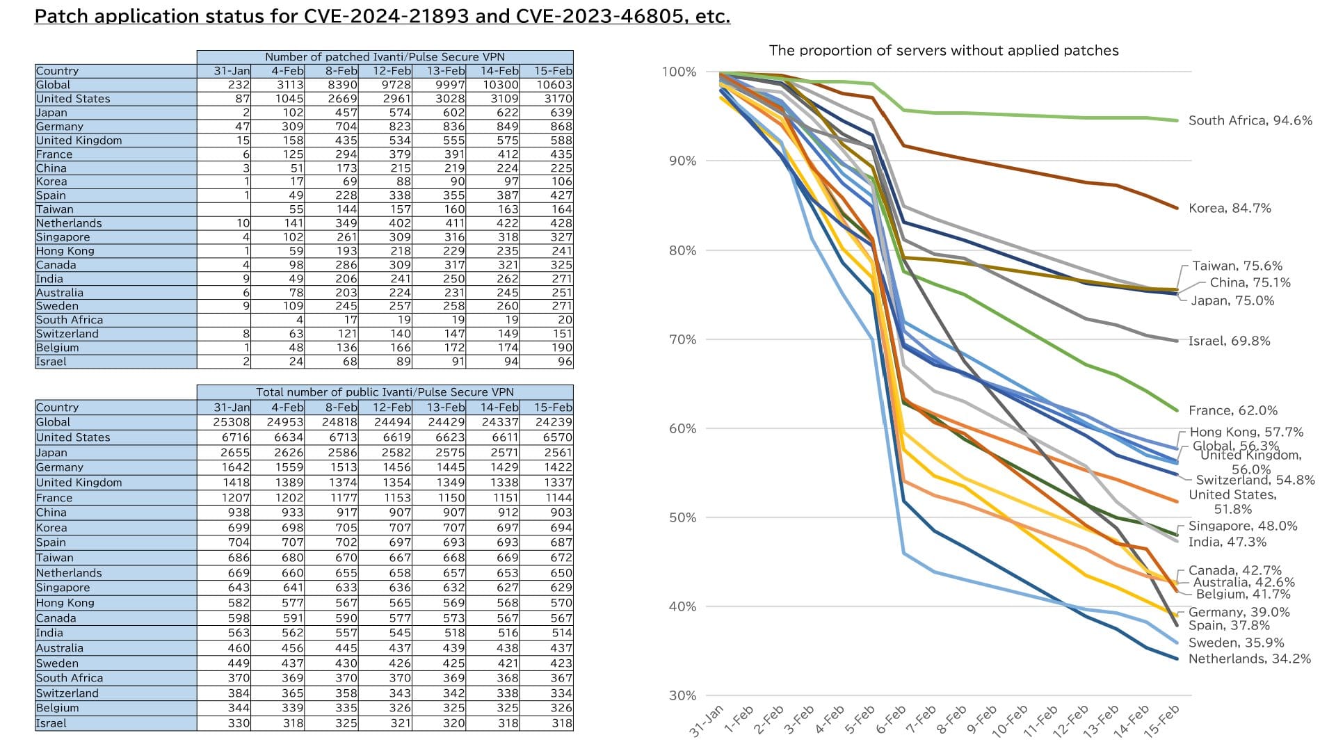 That’s according to fresh analysis by security researcher Yutaka Sejiyama, who assessed public exposure to critical Ivanti vulnerabilities CVE-2024-21893, CVE-2024-21888, CVE-2023-46805, CVE-2024-21887.
