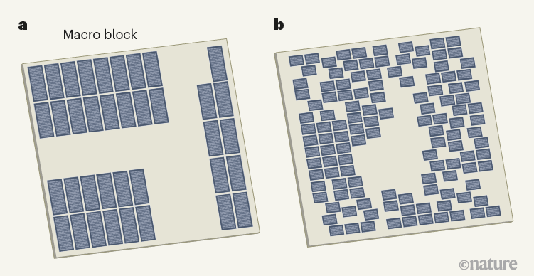 As Google's Mirhoseini and Goldie et al note: "These blocks can be described by a netlist, a hypergraph of circuit components, such as macros (memory components) and standard cells (logic gates such as NAND, NOR and XOR), all of which are connected by wires. Chip floorplanning involves placing netlists onto chip canvases (two-dimensional grids) so that performance metrics (for example, power consumption, timing, area and wirelength) are optimized, while adhering to hard constraints on density and routing congestion."