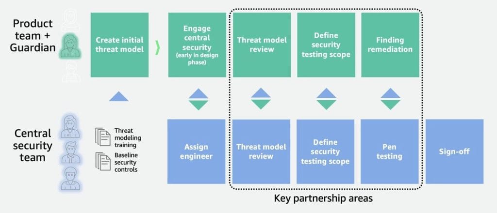 A central security programme team supports the process, including with material to teach Security Guardians how to create a threat model.
