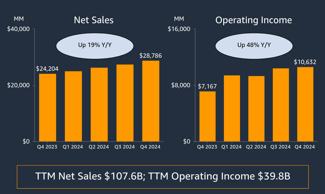 CFO Brian Olsavsky said he expects 2025 CapEx to be similar to Q4’s $26.3 billion; i.e. $100 billion+ in 2025 (he did not spell out an annual figure.)