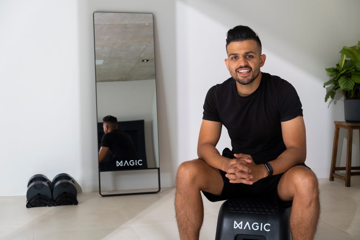 Varun Bhanot wants you to move in with your personal trainer. This isn't an attempt to break marriages or set up a new dating app. Rather, it's the elevator pitch for MAGIC AI – a literal black mirror that provides fitness training on command.