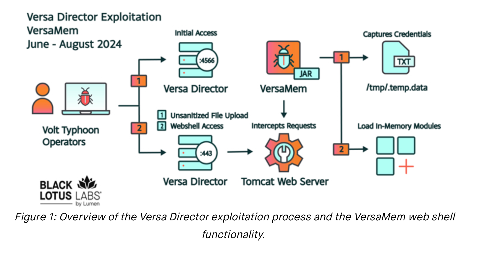 Threat actors gained initial administrative access through an exposed Versa management port intended for high-availability (HA) pairing of Director nodes, allowing them to deploy the VersaMem web shell.
