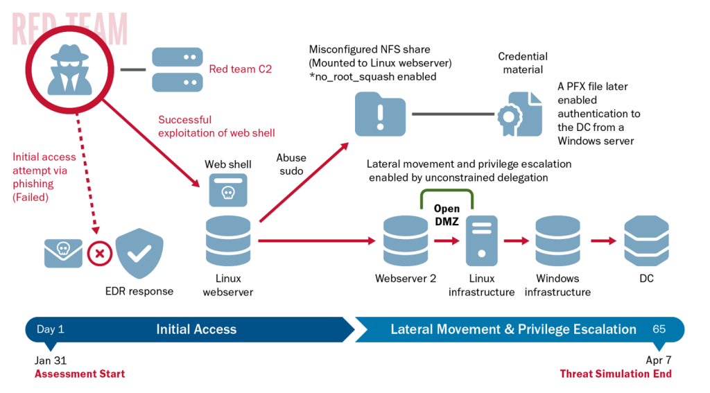 “To evade defenses, the red team reordered the process identifier (PID) of its executable processes to appear closer to the kernel and minimize the team’s likelihood of detection. The team also modified its processes by changing their names in memory and at execution. In addition, they used Python scripts run in memory to avoid on-disk detection…” Sneaky.