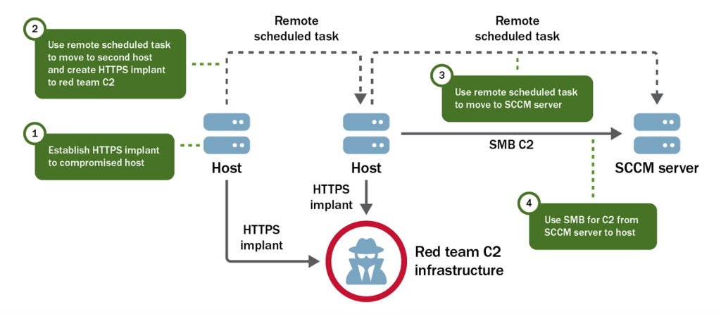 “The preexisting web shell allowed the red team to run arbitrary commands on the server as a user (WEBUSER1). Using the web shell, the red team identified an open internal proxy server to send outbound communications to the internet via… HTTPS. The red team then downloaded and executed a Sliver payload that utilized this proxy to establish… C2 over this host, calling back to their infrastructure.”