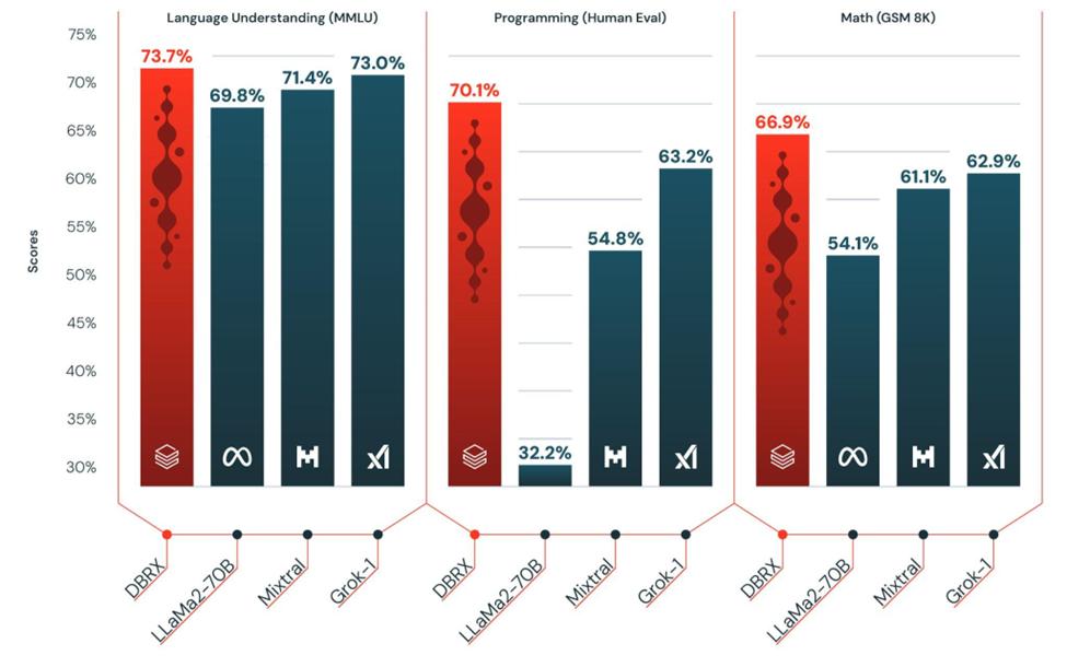 Its DBRX model outperforms Meta’s LlaMA2, Mixtral and Grok on language understanding, coding, and maths (per the Hugging Face Open LLM Leaderboard and Databricks Model Gauntlet benchmarks.)