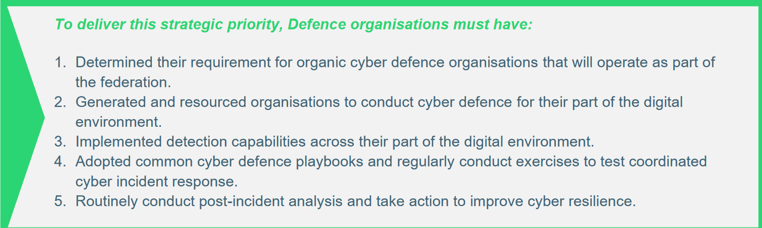 Like many setting out on building a cohesive cyber resilience strategy, identifying key assets and setting red lines for each is a key starting point and the report reflects that, noting a need to: "Define our critical systems and the levels of resilience each needs; engage with our critical suppliers to improve the supply chain security; provide new pan-Defence cyber security policy" and more specifically in the wake of mounting threats "continually evolve our risk response plans and use key risk indicators to measure progress across all Defence organisations."
