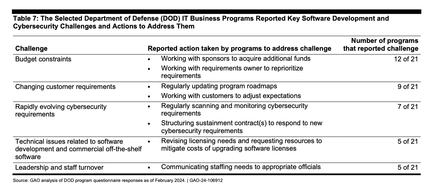 A new report from the Government Accountability Office (GAO) has highlighted major challenges across the DOD's systems, calling on the department to "strengthen" its software metrics and address "continued cybersecurity and reporting gaps."
