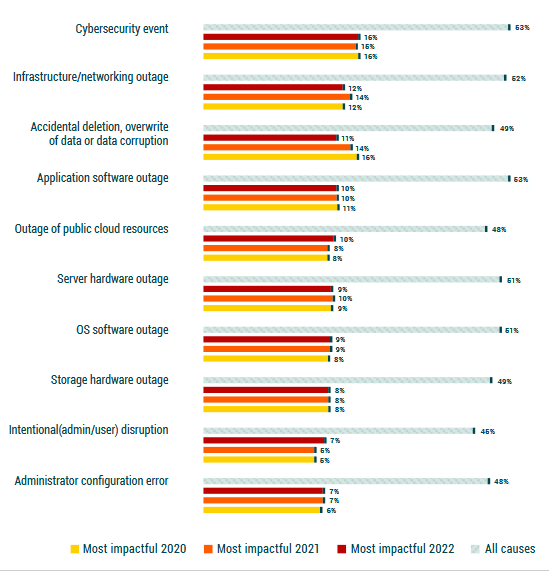 A report this week by backup specialist Veeam found that cyberattacks caused the most impactful outages for organisations in 2020, 2021 and 2022, with 85% of organisations attacked at least once in the past 12 months.