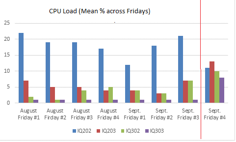 "Based on the load factor, we hit the stats socket (port 9999) to update the weights of each node. As an example, [left] is a snippet of the code – we are looking for 5 consecutive occurrences of CPU over 95% which highlights CPU flatlining and thus the factor of the load on the reader node."