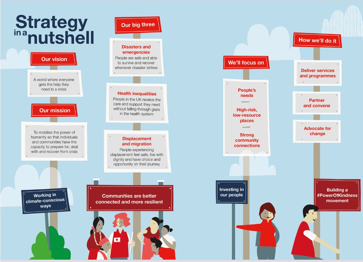 When asked how to effect a real paradigm shift in an organisation that’s 150 years old, Leah said the changes speak to wider shifts in the humanitarian and overseas aid sectors. “There’s an admission that Western middle-class educated technical experts don't have the answers to people's incredibly complex lives, and don't have the answers to what's best for them. That ‘parent/child’ colonial relationship is no longer relevant. Another element of the strategy that really shifted people's mindsets, was that we had a commitment from the very beginning to use externally-facing data evidence and evidence about people's experiences in a crisis. Amplifying the voice and views of people with lived experience of the crises we respond to about what they need is increasingly guiding how we think. This builds on community approaches in our international programmes and is providing us with a different way of looking at things. This is a huge shift from the previous strategy, where we were locked into focusing on what we had historically delivered based on the knowledge of technical experts. Responding to the Grenfell Fire in 2017 taught us that you’ve got to let go and listen to what people are telling you about what matters to them, and what makes a difference in their lives.”