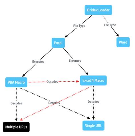 A third uses encoded data in an Excel worksheet. As the HP malware research team explains: "When run, the VBA code loads the data from the worksheet and decodes it using one of many routines. The decoded data is a list of hundreds of URLs, from which one is randomly chosen to download Dridex. The sheer quantity of payload URLs is unusual for a loader, so we decided to analyze this download mechanism in more detail."