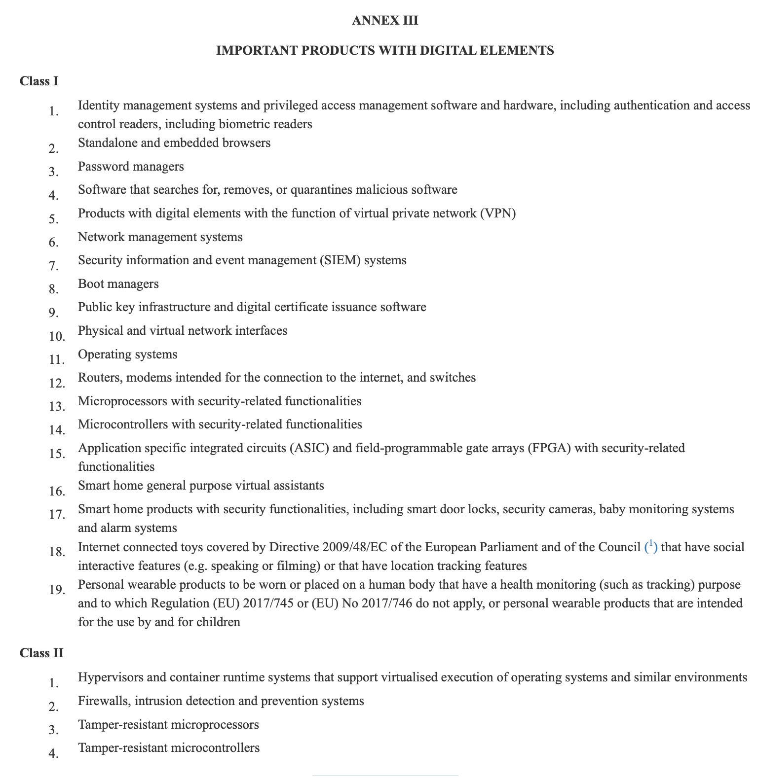Products will be categorised into different lists based on their importance and the level of cybersecurity risk they pose, with critical products including smartcards, "hardware devices with security boxes", smart meter gateways and "other devices for advanced security purposes, including for secure cryptoprocessing".