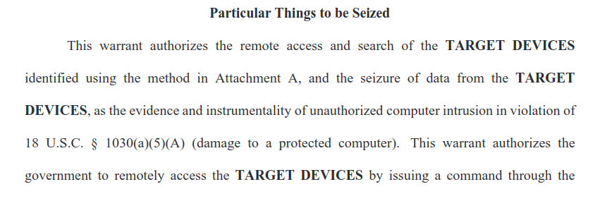 It did not do so earlier/in advance because “premature disclosure to the public at large or to individual owners of the TARGET DEVICES could result in publicity that would then give the hackers the opportunity to make changes to the malware, enabling continued or additional damage to remaining victims’ devices” the FBI said in unsealed court papers.