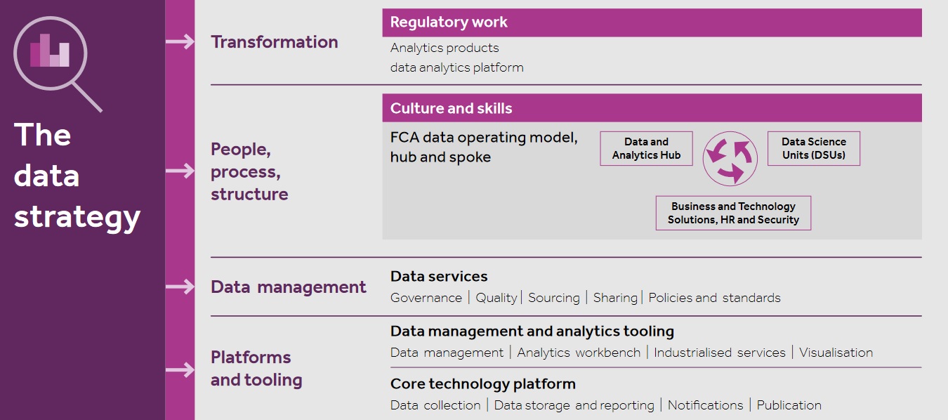 The leadership shakeup came as the FCA continues to work its way through a digital transformation that include an ambitious data strategy. The aim of the latter: improve the FCA's ability to simulate policy outcomes using automation and analysis; use advanced data analysis to identify where it needs to intervene; upgrade its ability to actively scan the activity of firms it regulates -- as well as analyse market infrastructure -- and ultimately publish rich FCA datasets that allow firms to simulate and test new products and business models.