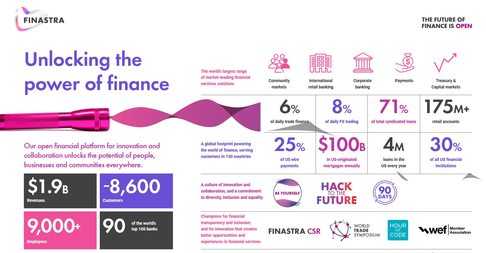 Finastra, formed in 2017 by the combination of Misys and D+H, is the largest pure-play software vendor that serves the entire financial service industry – with over 8,600 customers, including 90 of the world’s top 100 banks. As a snapshot of its footprint, the London-headquartered multinational settles 71% of all syndicated loans globally, provides infrastructure to support 175 million retail accounts, and powers some 25% of all US wire payments.