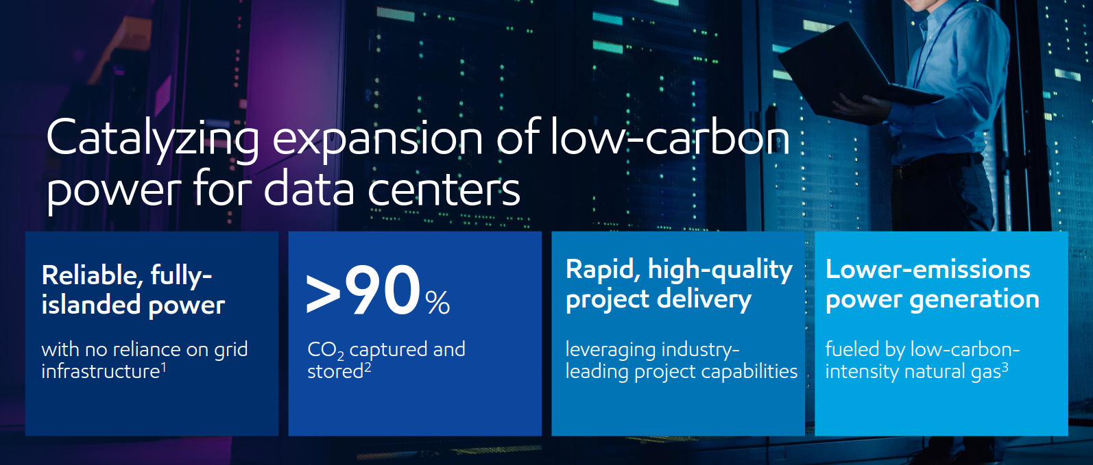 “We're going to use a state-of-the-art carbon capture unit to trap over 90% of the CO2 emissions from the power generation and then we'll use our CO2 pipeline and our network of sequestration sites to transport and capture that CO2 permanently… The value proposition for low carbon data centers is on the molecules side of the equation for us,” he added.