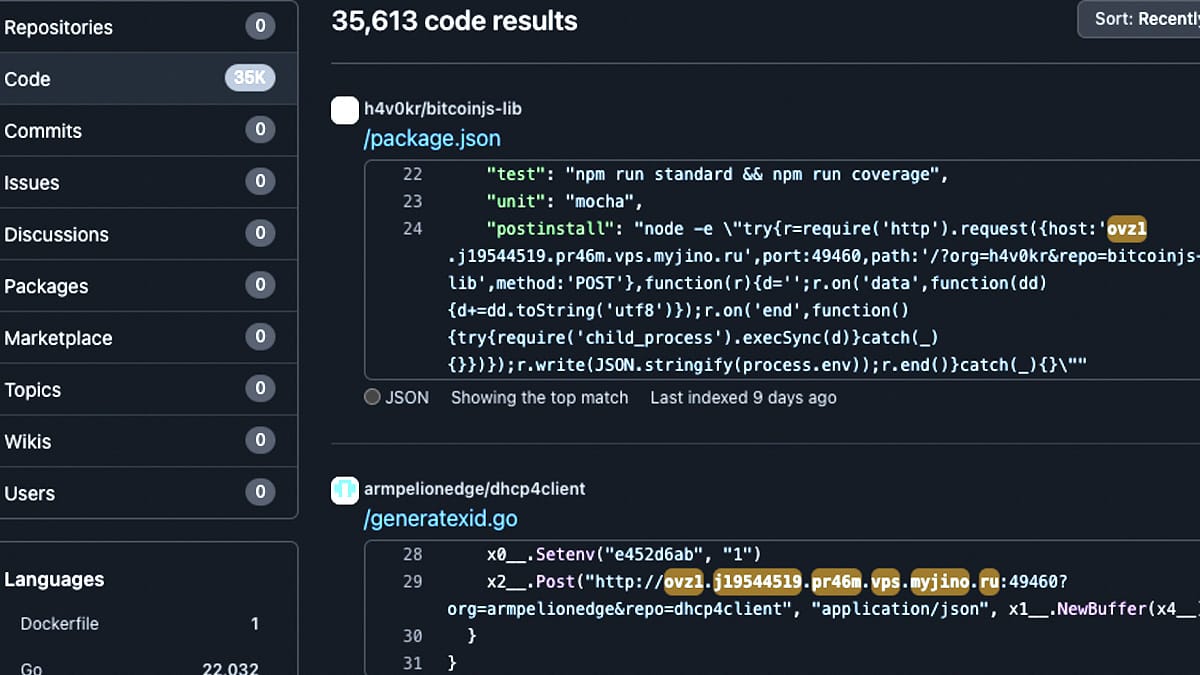 The search phrase to find infected projects or code from the GitHub supply chain attack is: “ovz1.j19544519.pr46m.vps.myjino[.]ru” (without square brackets)