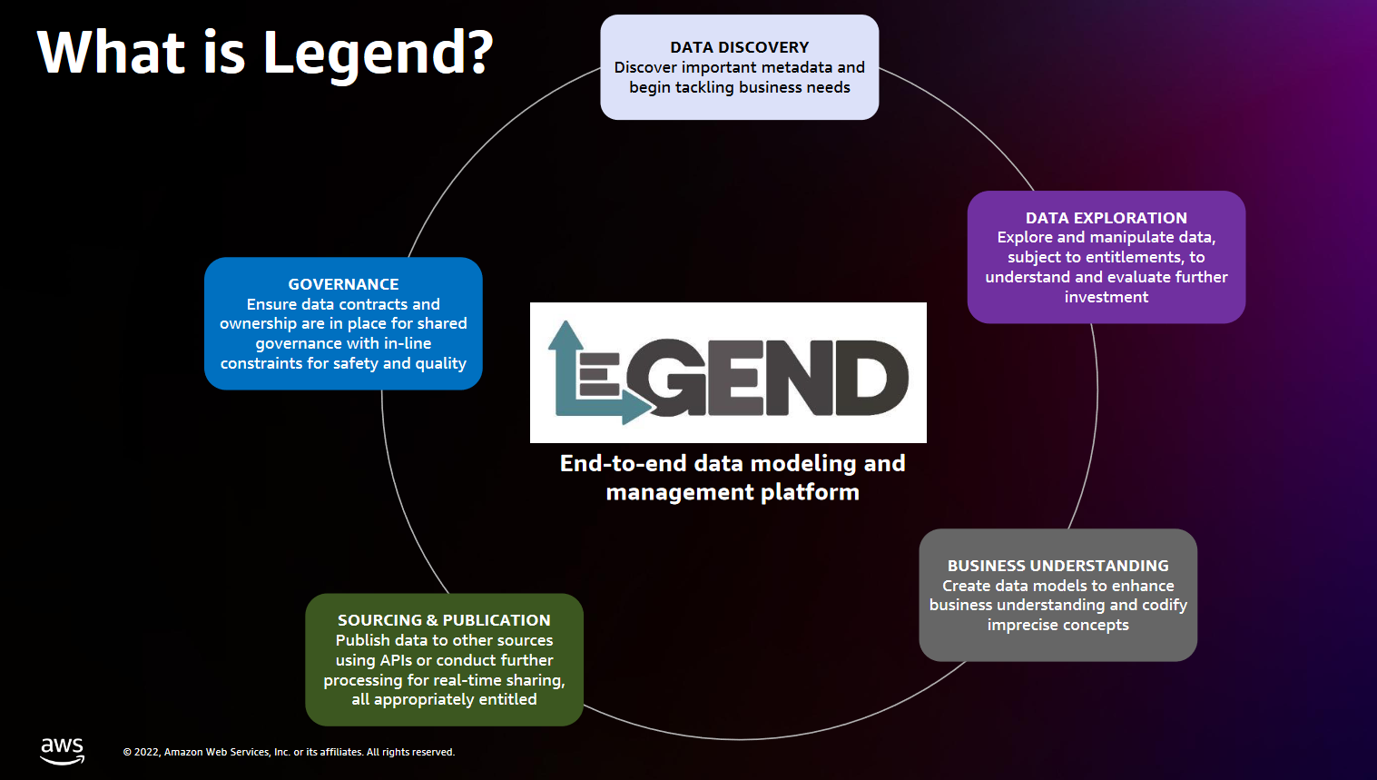 Practically, as Rajamony put it in a session at AWS’s re:Invent in December 2022: “We want to work with data like we – engineers – work with code. For example, when you write a program in a high level programming language, you don't worry about register allocation. You let a pre-created construct, the compiler and the assembler, work with it and you let that take care of mapping it down into the actual hardware. You work at a higher level… When you work with Legend [it’s the same]: It lets you work with data at a semantic level, which means you express data models and transformations in a functional immutable language called Pure.