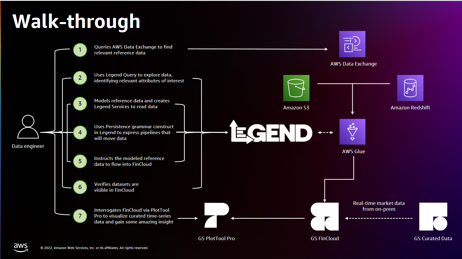 Goldman engineered its Financial Cloud for Data to run distributed server-side analytics, enrich data in real time and stream and analyse time-series data (including in real time) In addition, augmenting this with relational data, ingested using a wide range tools including the managed serverless Apache Spark SaaS AWS Glue, and the open source FINOS Legend platform. AWS Glue is particularly valued because as Ram Rajamony puts it “it does the work, tears it down, does the serverless part of it, and it's managed, so it minimises our overhead.”