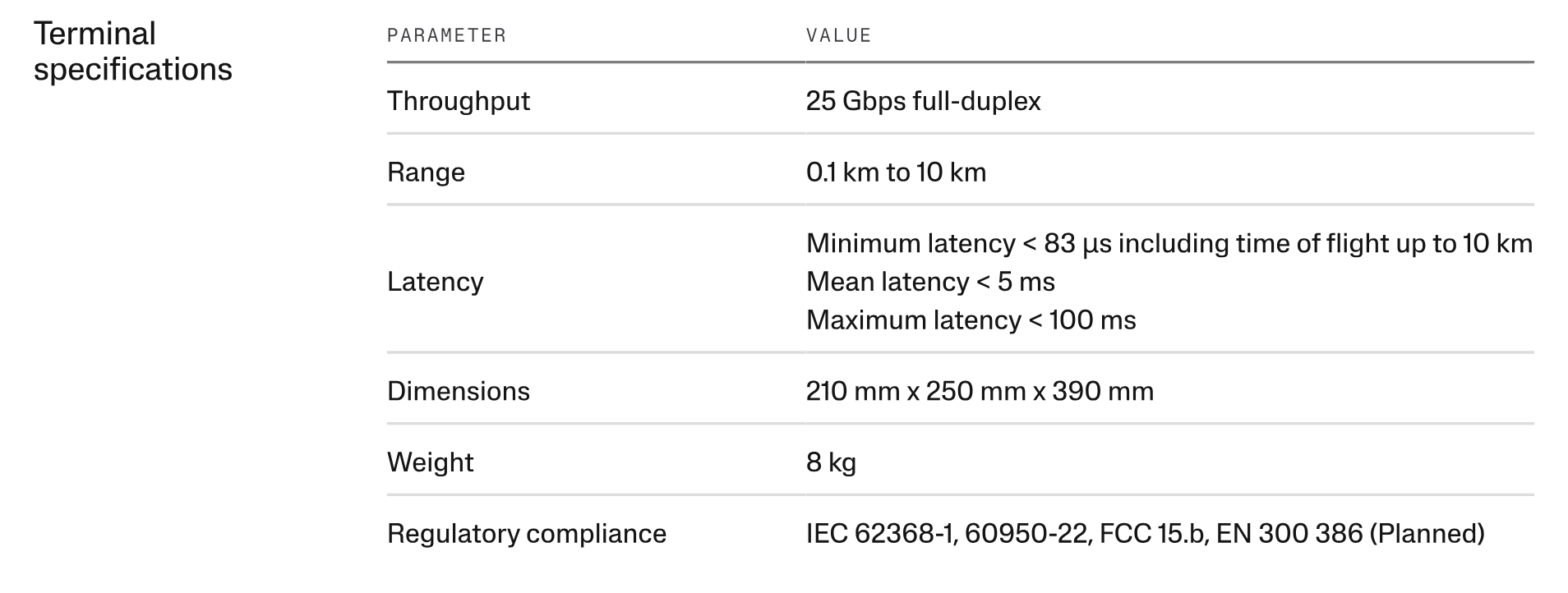 Taara said that Taara Beam transmits data “wirelessly with Class 1M eye-safe lasers in the unlicensed infrared band (193 THz)” and can support speeds of up to 25 Gbps – claimed range is 100 meters to 10 kilometers.