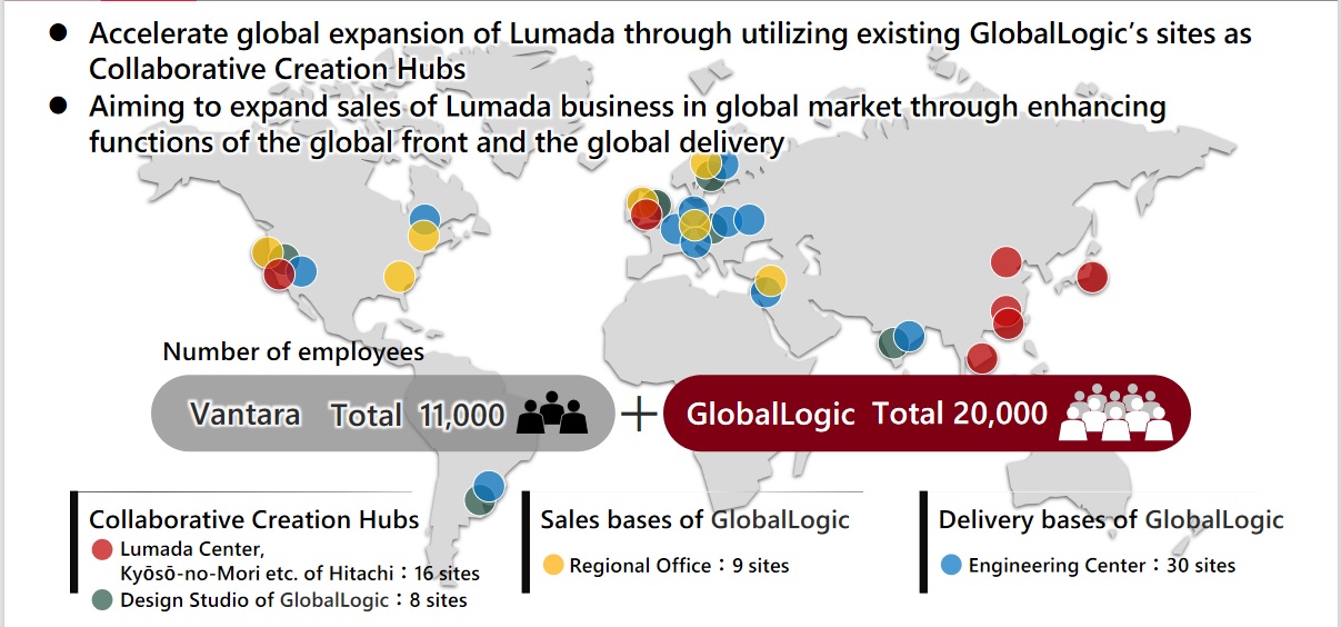 An investor presentation suggested that Hitachi sees the GlobalLogic deal as a way to give heft to its Santa Clara-based subsidiary Hitachi Vantara, which combines the former Hitachi Data Systems storage and data centre infrastructure business, its IoT business, and the Pentaho data analytics business (Hitachi Vantara also owns REAN Cloud, a cloud Systems Integrator) as well as boosting its nascent "Lumada" IIoT platform.