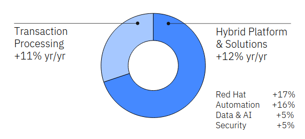 Transaction processing accounted for approximately a third of IBM’s software segment revenues. Red Hat also performed strongly, with revenues up 17% (OpenShift ARR hit $1.4 billion up ~25%.)
