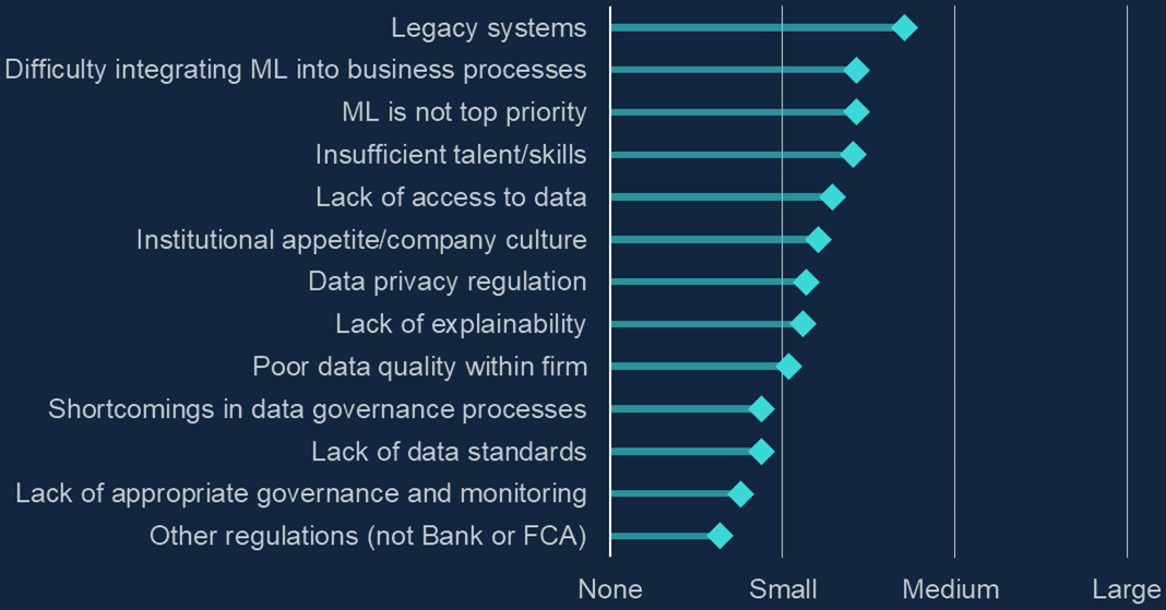 As the 2022 Bank of England machine learning report says: "ML applications and the processes around them often need up-to-date hardware, database infrastructure, and operating systems to run effectively and efficiently. That is why developing, deploying and/or integrating ML with legacy systems can become challenging."