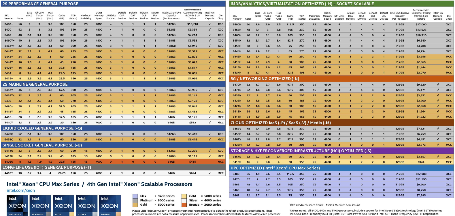 The Sapphire Rapids line features “nearly 50 targeted SKUs [from] mainstream general-purpose SKUs to purpose-built SKUs for cloud, database and analytics, networking, storage, and single-socket edge use cases” said Intel on January 10 (an SKU is basically a product type; i.e. you can choose nearly 50 different new chips.)