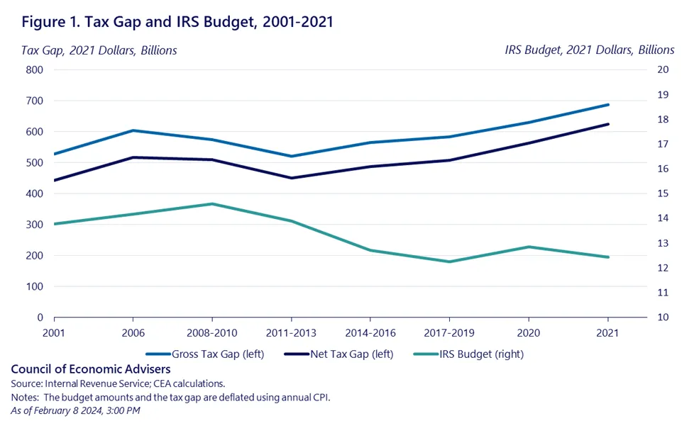 The recent Inflation Reduction Act provided $80 billion in additional funding to the IRS. The IRS budget had previously decreased from $15.1 billion to $12.4 billion between fiscal years 2010 and 2021 after accounting for inflation— an 18% decline, the White House said. During the same time, the IRS lost upwards of 15,000 full-time employees.