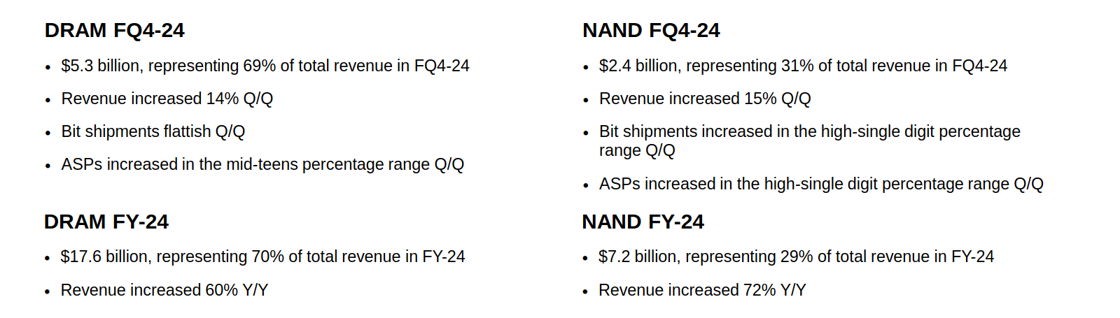 "We are extremely focused on delivering our goals of getting to our share in HBM to be in line with DRAM share sometime in 2025, extremely focused on continuing to ramp up our production capacity and yield ramp, which are going well according to our plan," said Mehrotra, adding that "we are doing well with respect to our goals on HBM3E yields with 8-high. And in '25, of course, we will be increased – beginning our output in early 2025 with 12-high."