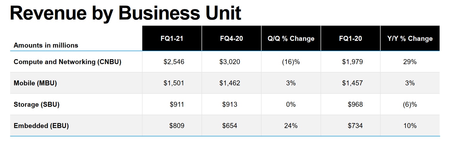 The company's compute and networking segment revenues were up 29% on fiscal Q1 2020, meanwhile, although they fell 16% on the previous quarter "with ongoing enterprise weakness". Mehrotra added: "We believe DRAM is past the bottom of the industry cycle and expect improving trends through calendar 2021 as the digitization of the global economy continues."