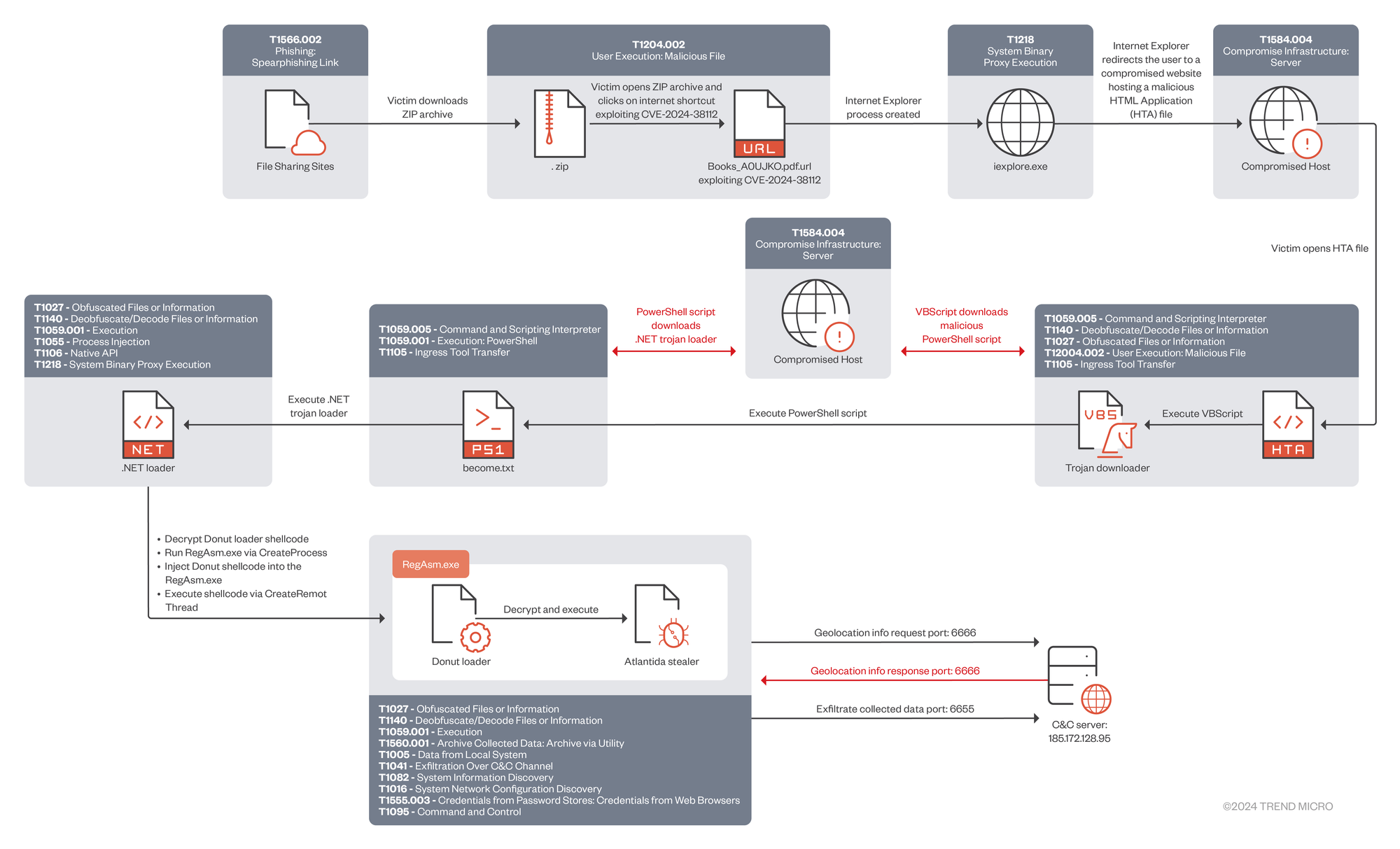 According to the ZDI researchers, variations of the Atlantida campaign have been highly active throughout 2024 and have evolved to use CVE-2024-38112 as part of Void Banshee infection chains. Since, the exploit has been added to CISA's catalogue of known vulnerabilities as well.