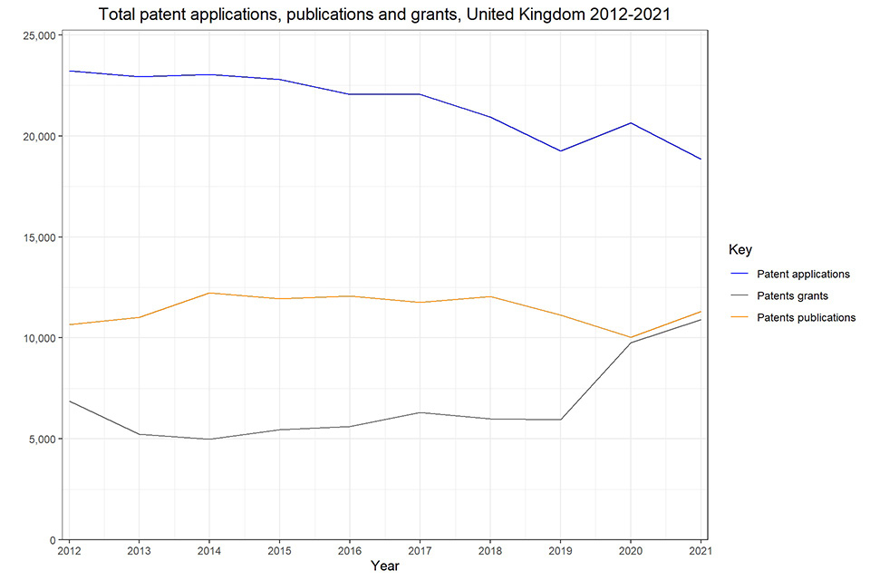Asia’s share of global patent filings over the past decade has risen steadily from 54.6% in 2011 to 67.5% in 2021 says the WEF. In the UK total patent applications have fallen from 22,055 in 2016 to 18,854 in 2021.