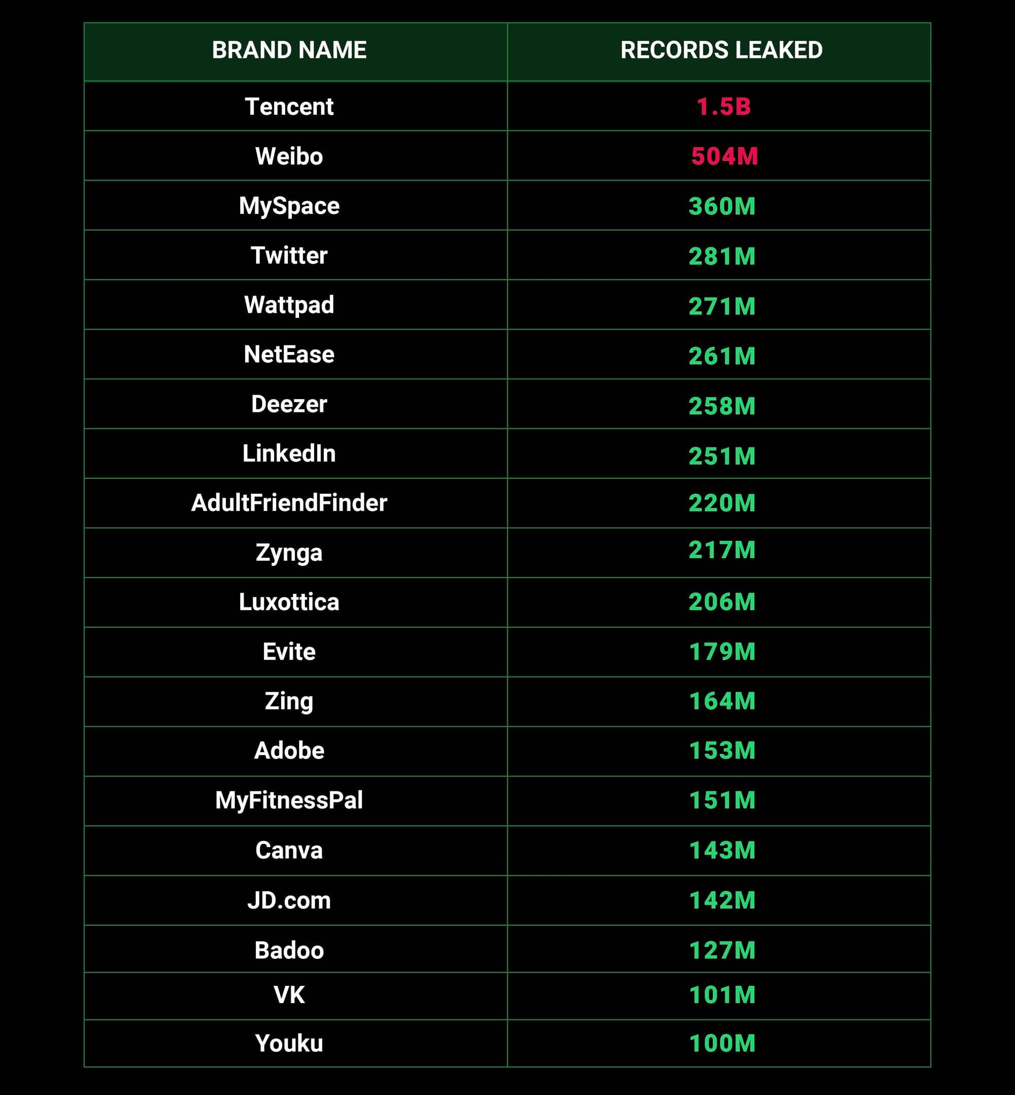 It includes indexed data from breaches of various government organizations including the US, Brazil, Germany, Philippines, Turkey, and others. Companies whose data has been compromised in the MOAB include Weibo, MySpace, Twitter, Deezer, Linkedin, AdultFriendFinder, Adobe, Canva, VK, Daily Motion, Dropbox, and Telegram.