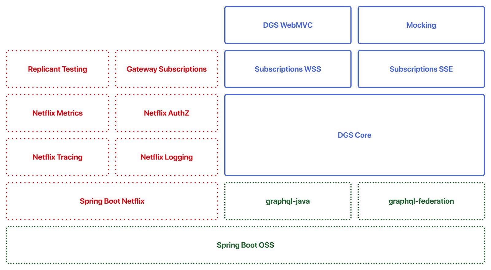 The framework (built on standard open-source Spring Boot) pivots around GraphQL schema that lets the API user specify precisely which fields to retrieve in a query, and is designed to be an "effective way to split the ownership of a large monolithic GraphQL schema across microservices." Netflix describes its key features as being: