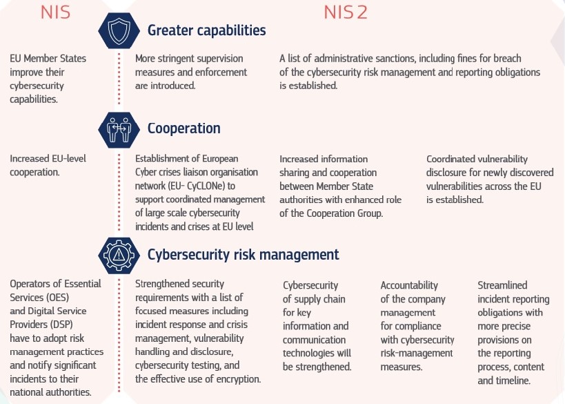 Under the initial NIS, which came into force in the UK in 2018, those covered by the legislation had to adopt risk management practices and notify national authorities about "significant incidents". The replacement legislation will mandate a much more robust package of requirements spanning incident response and crisis management, vulnerability handling and disclosure, cybersecurity testing, and effective use of encryption. (It is too early to say if the UK will mirror them in local legislation).