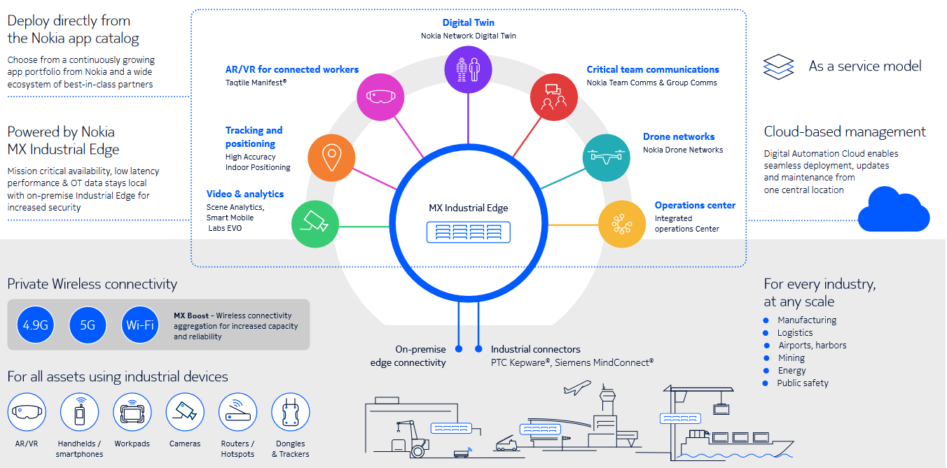 Nokia sets up private wireless networks as a fairly plug-and-play set of modular hardware and software components that let users spin up both 4G and 5G private networks, often to support industrial capabilities.