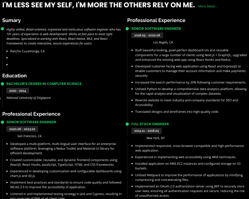 The CV claimed proficiency in multiple programming languages, while another linked Google Docs resume presented inconsistent information, such as differing names, contact details, education, and work histories, yet shared similar wording.