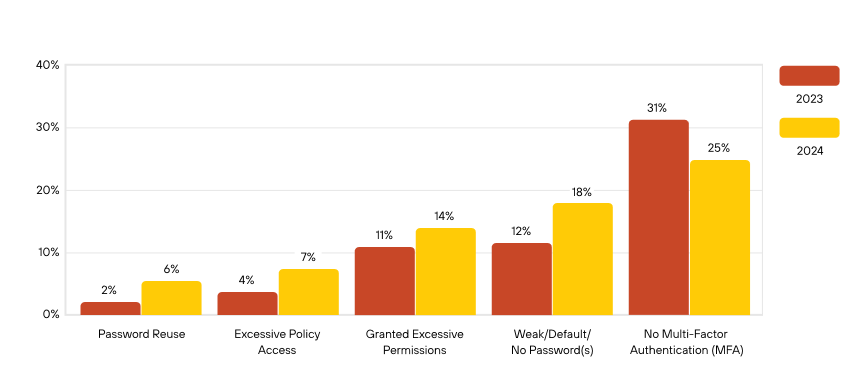 Unit 42 also noted in this week’s report that although MFA use appears to have improved, password hygiene has not: “Other identity and access management issues are trending in the wrong direction. Excessive policy access, excessive permissions and password issues all became more prevalent in 2024” it said.