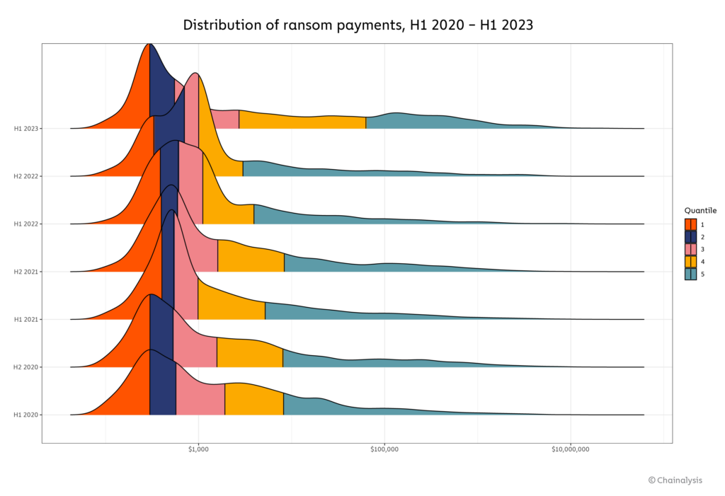 Chainalysis said: “We previously attributed the 2022 decline in average ransom size to improved cybersecurity and data backup practices by large organizations, as well as law enforcement efforts, increased availability of decryptors, and sanctions against services offering cashout services…