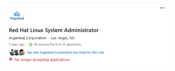 Arganteal had said it “... seeks an onsite Red Hat Linux System Admin ‘RHEL SysAdmin’ in Las Vegas, Nevada for immediate work. This role will be helping the MGM Grand Casino to build its net new IT environment after the recent ransomware hack. Candidates must be willing to work everyday until the new IT environment is fully stood up.”