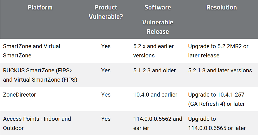 CISA added the RUCKUS Networks vulnerability to its “known exploited catalogue” on June 29. Among the affected products is RUCKUS ZoneDirector: software that is used to centralise “authentication and authorization decisions” for any Access Points (AP) across a given WLAN.