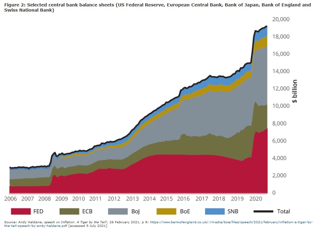 In possibly unrelated news, central bank balance sheets have swollen immensely amid sustained unconventional monetary policy that has pumped trillions into financial markets and pumped up asset prices as investors chase yield.
