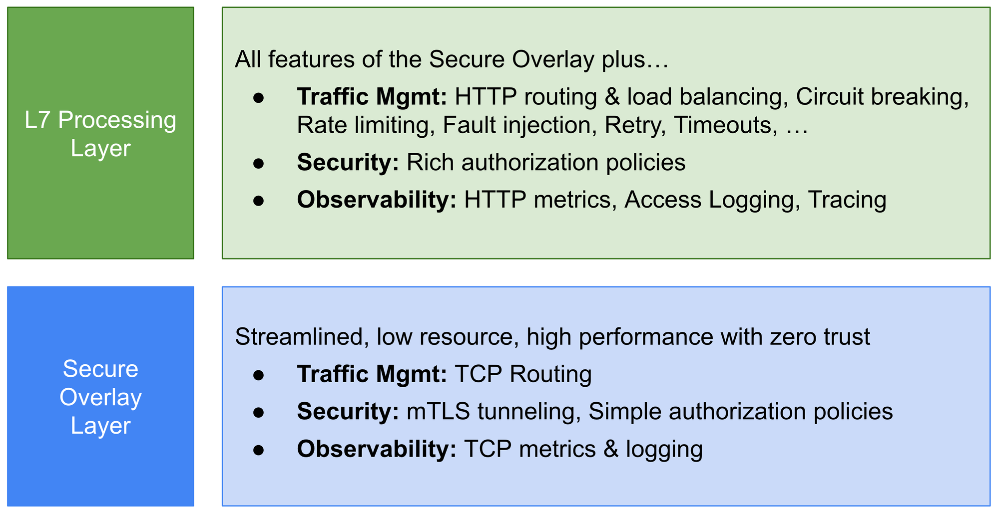 "The L7 processing mode, while heavier than the secure overlay, still runs as an ambient component of the infrastructure, requiring no modifications to application pods" an early community blog explained.