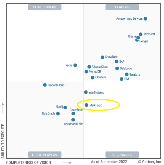 MarkLogic positions itself as a NoSQL database system for integrating data from various data silos and improving “data agility”. It was last year named a visionary in its Magic Quadrant and made a significant acquisition itself in November 2021 with the buyout of metadata management firm Smartlogic.