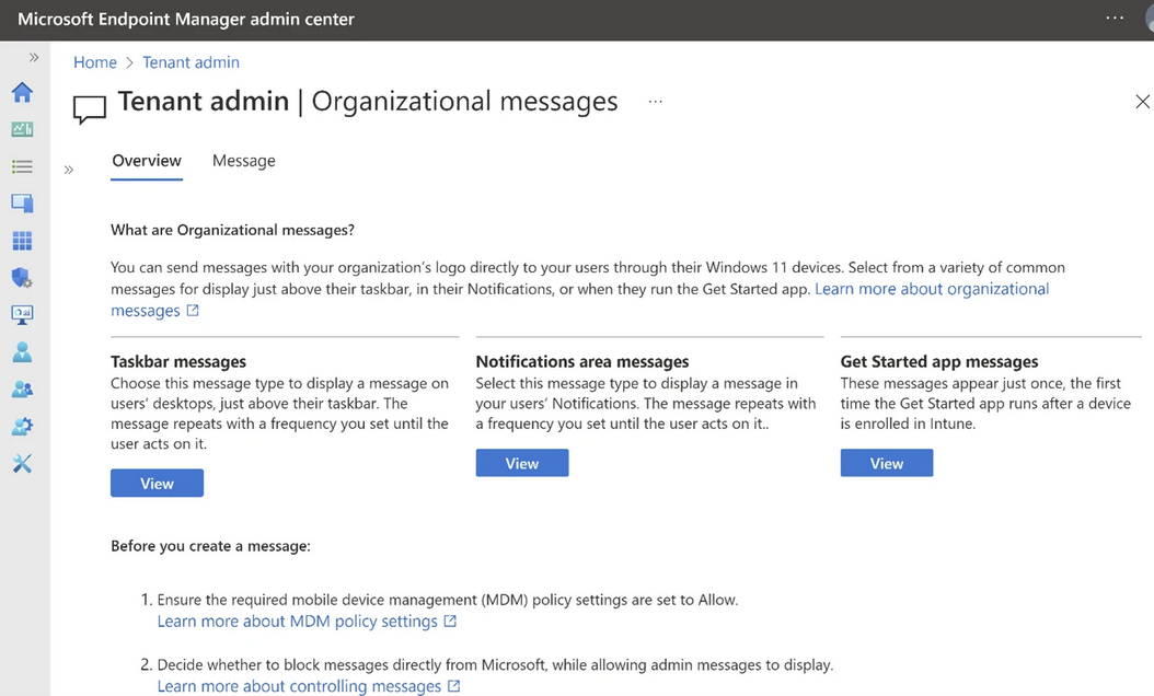 In April 2022, for example, Redmond introduced a feature called organizational messages that lets IT send direct communications to employees within Windows, such as above the taskbar, in the notifications panel, and in the Get Started application: “From the Endpoint Manager admin center, IT can create messages and add their company logo, provide customized links or URLs, configure the viewing frequency, and, of course, define the targeted set of users for the message based on the integration with Azure Active Directory. This allows better employee connection while respecting privacy and ensuring helpful and targeted information reaches your people” – as a way for IT to push important messages out to all enrolled users, it seems powerful and welcome.