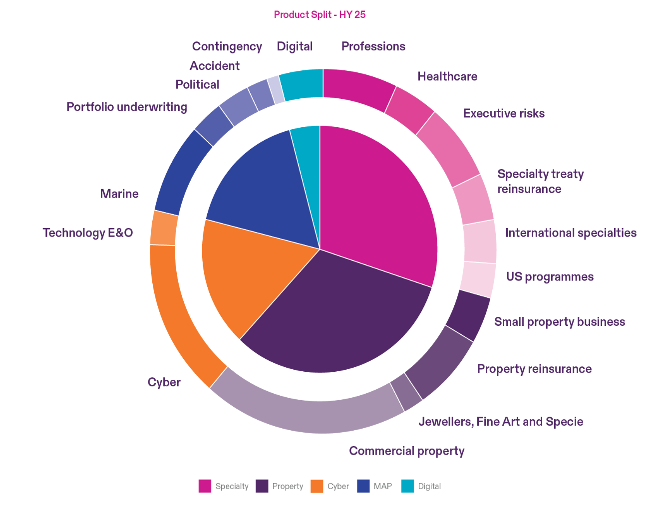Speaking at a November 2025 capital markets day, Beazley’s Chief Underwriting Officer Paul Bantick noted that “many people think we're just a cyber player. But what this [slide below] shows is we are not and nor do we want to be. [It] shows really well is just how diversified our business is.”